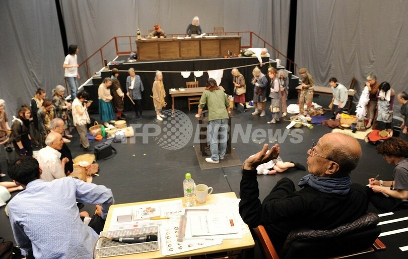 今年1月に心臓の手術を受けた蜷川氏は、時には自分自身の年齢を忘れることもあるが、高齢の俳優たちと一緒にやることを、とても程よいと感じている。「年を取ると、台詞を忘れるだけでなく、出入りさえ忘れてしまう。でも芝居をやってると生き生きしちゃうんですよね。(いくつになっても)自分で成長していくんですね……この劇団が、もう少し続けてみようというエネルギーをくれる」(c)AFP/Shingo Ito