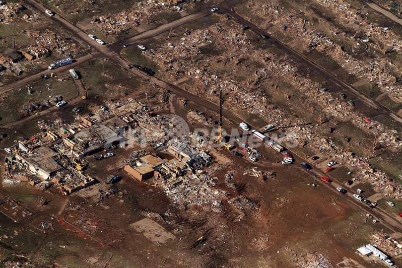 【5月22日 AFP】米中部オクラホマ(Oklahoma)州オクラホマシティー(Oklahoma City)郊外で20日に発生した巨大な竜巻で、壊滅的な被害を受けたムーア(Moore)では、現在も生存者の捜索が続けられている。死者は少なくとも24人。同州ノーマン(Norman)にある米海洋大気庁(NOAA)暴風雨研究所(Severe Storms Laboratory)によると、竜巻の強さは最も強い「EF5」で、風速は89メートルを超えた。(c)AFP