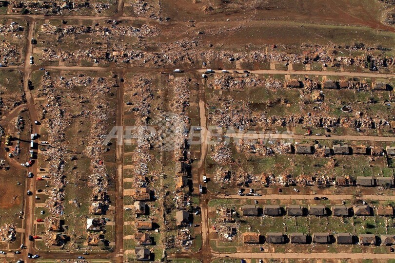 写真は、竜巻により破壊されたムーア市内を捉えた空撮写真(2013年5月21日撮影)。(c)AFP/Getty Images/Benjamin Krain