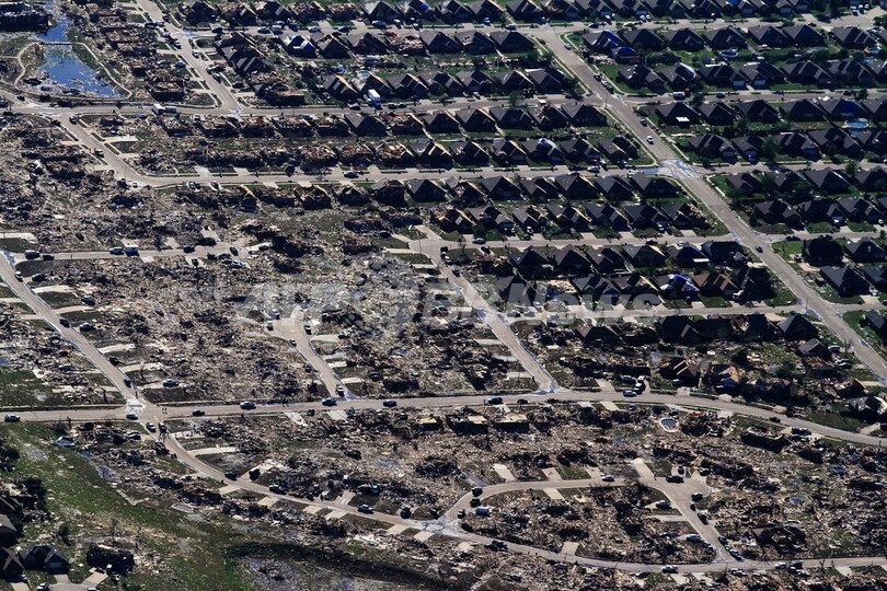 写真は、竜巻により破壊されたムーア市内を捉えた空撮写真(2013年5月21日撮影)。(c)AFP/Getty Images/Benjamin Krain
