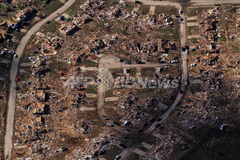 【5月22日 AFP】米中部オクラホマ(Oklahoma)州オクラホマシティー(Oklahoma City)郊外で20日に発生した巨大な竜巻で、壊滅的な被害を受けたムーア(Moore)では、現在も生存者の捜索が続けられている。死者は少なくとも24人。同州ノーマン(Norman)にある米海洋大気庁(NOAA)暴風雨研究所(Severe Storms Laboratory)によると、竜巻の強さは最も強い「EF5」で、風速は89メートルを超えた。(c)AFP