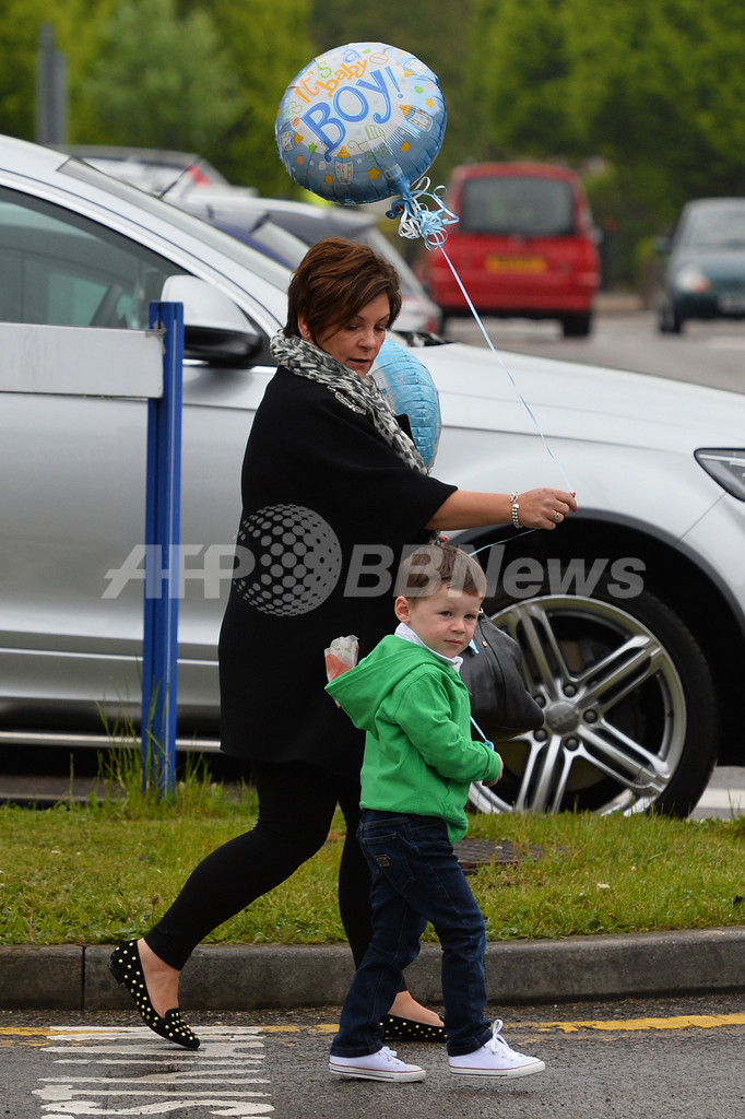 コリーンさんの母親と一緒に病院に到着したウェイン・ルーニー(Wayne Rooney)の息子カイ(Kai)くん(2013年5月22日撮影)。(c)AFP/PAUL ELLIS