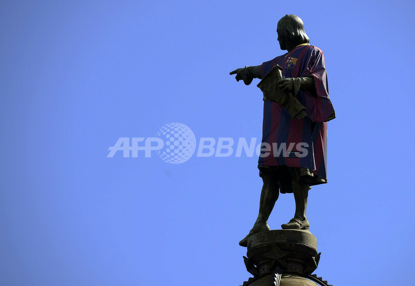 バルサの新ユニフォームを着るクリストファー・コロンブス像