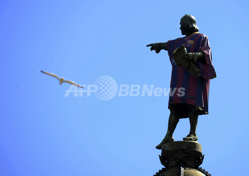 バルサの新ユニフォームを着るクリストファー・コロンブス像