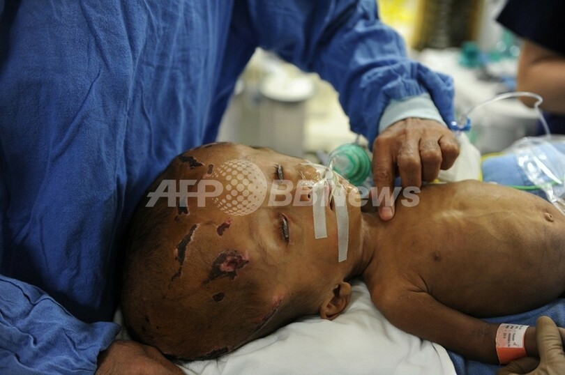 先週、同じ医師団により、ルーナちゃんの頭蓋骨に手術用ドリルで穴を開け、たまった水を抜き取る手術が行われた。バイシャ医師によると、この手術後、ルーナちゃんの健康状態は「大幅に改善した」という。(c)AFP