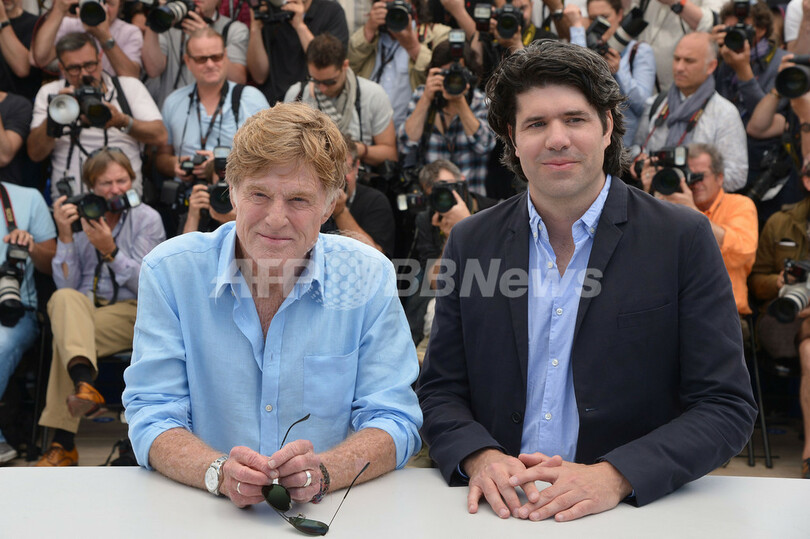写真は、フォトコールに登場したレッドフォードとチャンダー監督(2013年5月22日撮影)。(c)AFP/Deborah COLE/ALBERTO PIZZOLI