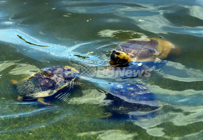 9番ホールの水たまりに姿を見せたウミガメ(2013年5月23日撮影)。(c)AFP/Getty Images/Sam Greenwood