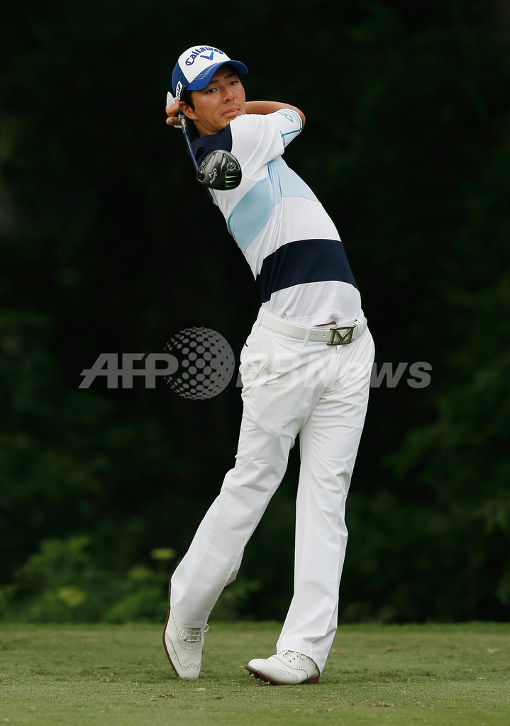 6番ホールでティーショットを打つ石川遼(2013年5月23日撮影)。(c)AFP/Getty Images/Scott Halleran