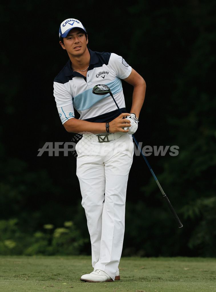 6番ホールでティーショットの行方を見る石川遼(2013年5月23日撮影)。(c)AFP/Getty Images/Scott Halleran