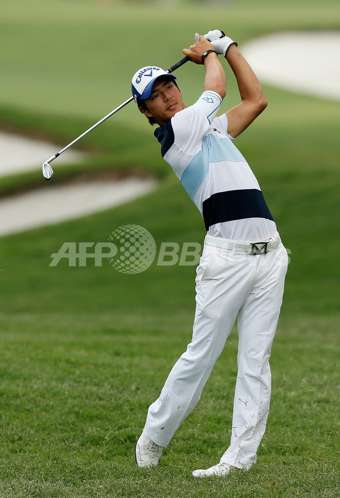 7番ホールでショットを打つ石川遼(2013年5月23日撮影)。(c)AFP/Getty Images/Scott Halleran