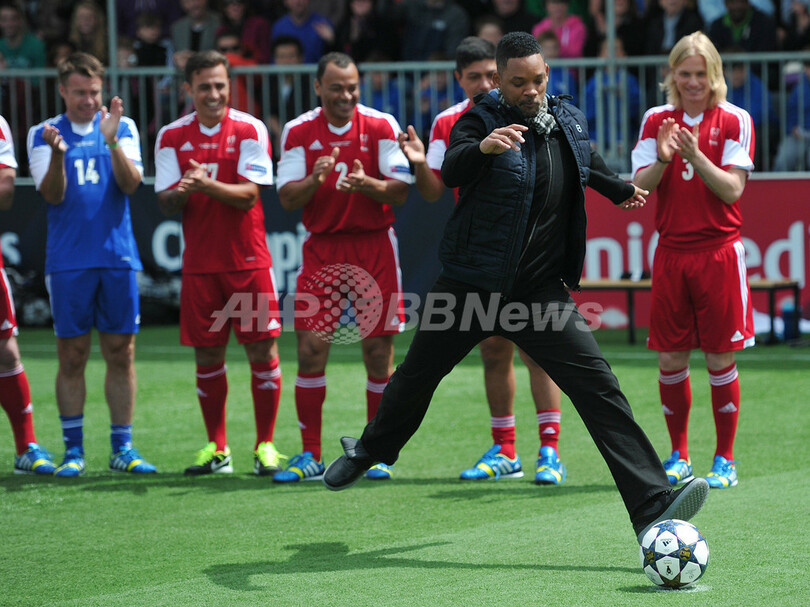 シュートを狙うウィル・スミス(2013年5月25日撮影)。(c)AFP/CARL COURT