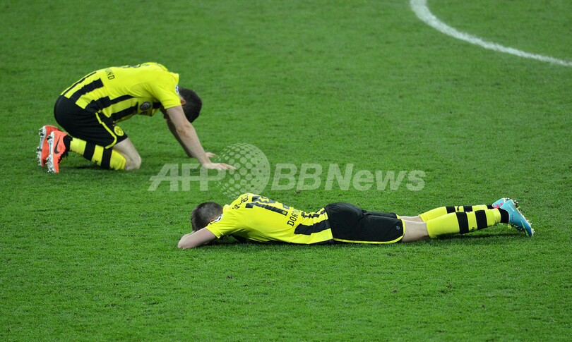 敗戦に落胆するボルシア・ドルトムントの選手(2013年5月25日撮影)。(c)AFP/OLIVER LANG