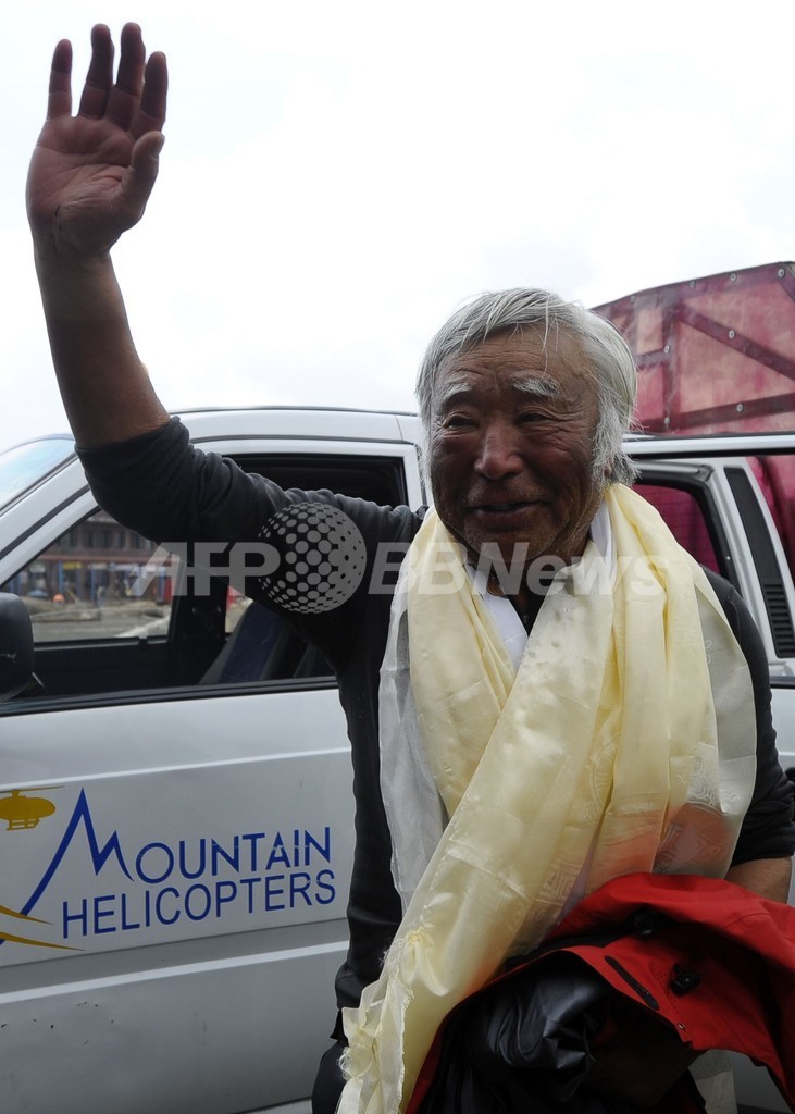 ニュース ライフ エベレスト最高齢登頂の三浦さん、カトマンズに到着 2013年5月26日 16:16 発信地:カトマンズ/ネパール [ アジア・オセアニア ネパール ] このニュースをシェア ‹ › ❮ 2/6 ❯ ネパール・カトマンズ(Kathmandu)のトリブバン国際空港(Tribhuvan International Airport)に到着したプロスキーヤーで冒険家の三浦雄一郎(Yuichiro Miura)さん(2013年5月26日撮影)。(c)AFP/Prakash MATHEMA 画像作成中 ! 【5月26日 AFP】23日に史上最高齢でのエベレスト(Everest、中国名・チョモランマ、8848メートル)の登頂に成功したプロスキーヤーで冒険家の三浦雄一郎(Yuichiro Miura)さん(80)が26日、ネパール・カトマンズ(Kathmandu)のトリブバン国際空港(Tribhuvan International Airport)に到着した。(c)AFP ライフ 一覧へ> メディア・報道関係・法人の方向け 写真・動画 購入のお問合せ>