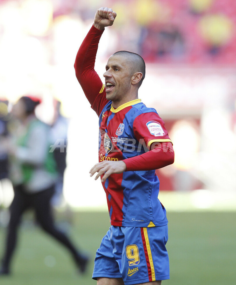 試合後に歓喜するクリスタルパレスのケビン・フィリップス(Kevin Phillips、2013年5月27日撮影)。(c)AFP/IAN KINGTON