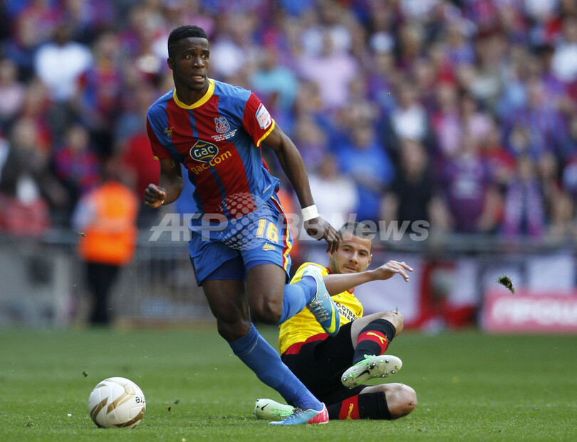 ドリブル突破するクリスタルパレスのウィルフレッド・ザハ(Wilfried Zaha、2013年5月27日撮影)。(c)AFP/IAN KINGTON