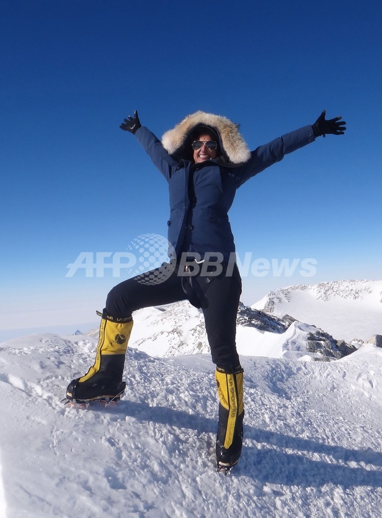 写真はエベレスト山頂で、登頂に成功し喜ぶムハラクさん(2013年5月18日撮影)。(c)AFP/HO/RAHA MOHARRAK ALBUM