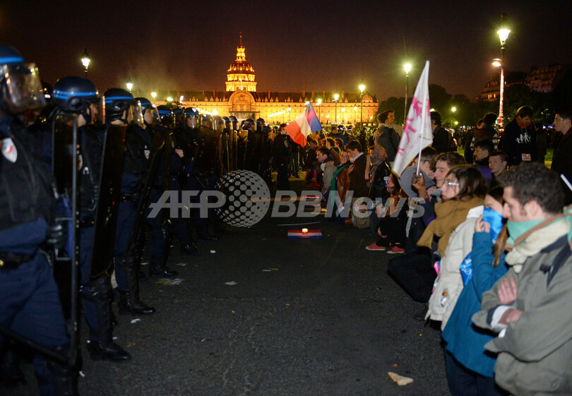 26日にも、同性婚と同性カップルによる養子縁組を合法化する新法に抗議するデモがパリ(Paris)で行われ、少なくとも15万人が参加した。当初は平穏な様相を呈していたデモだったが、後に暴力的になり、参加者数百人が機動隊と衝突した。
