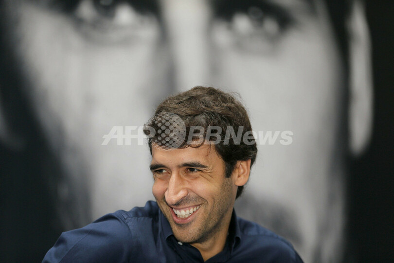 記者会見で笑顔を見せるアル・サード(Al-Sadd)のラウル・ゴンザレス(Raul Gonzalez、2013年5月28日撮影)。(c)AFP/KARIM JAAFAR