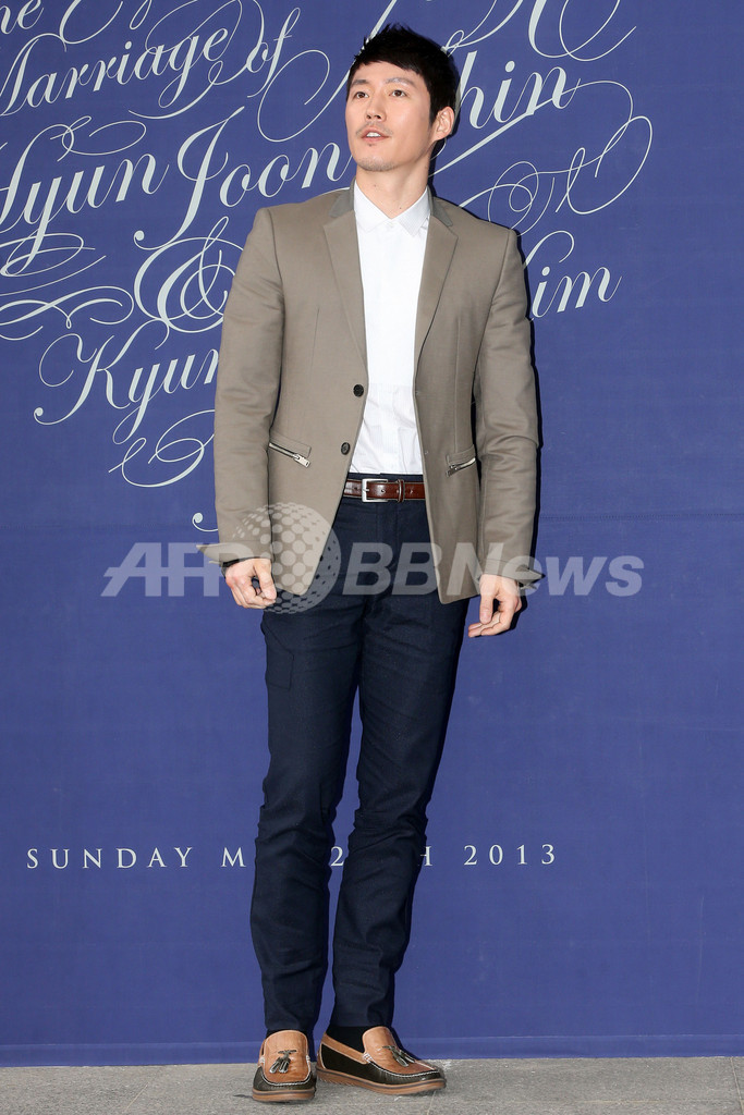 韓国・ソウル(Seoul)のハイアットホテル(Grand Hyatt Seoul Hotel)で26日、俳優のシン・ヒョンジュン(Shin Hyun-Joon)と12歳年下の一般女性との結婚式が行われ、俳優のチャン・ドンゴン(Jang Dong-Gun)や女優のチェ・ジウ(Choi Ji-Woo)をはじめとする多くの芸能人が出席した。写真は、フォトセッションに登場した俳優のチャン・ヒョク(Jang Hyuk、2013年5月26日撮影)。(c)STARNEWS