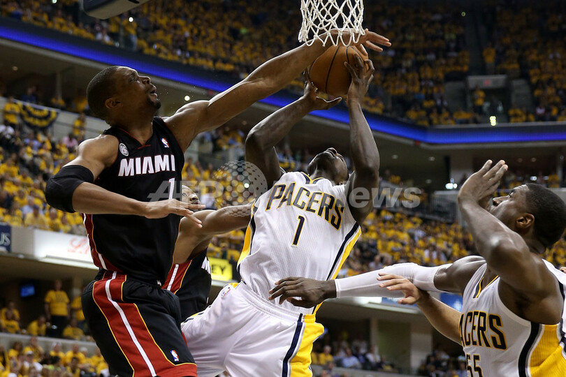 【5月29日 AFP】12-13NBAは28日、イースタンカンファレンス決勝(7回戦制)の第4戦が行われ、インディアナ・ペイサーズ(Indiana Pacers)が99-92でマイアミ・ヒート(Miami Heat)に勝利し、対戦成績を2勝2敗のタイへ戻した。