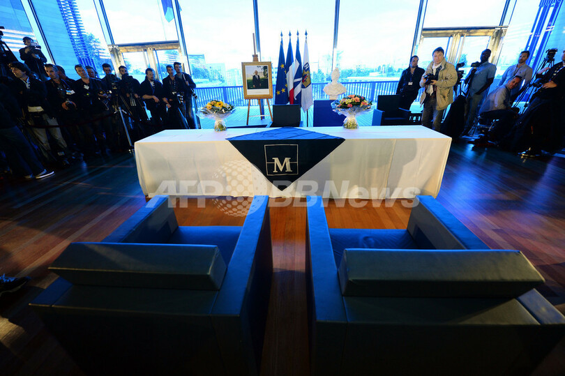 写真は、式の開始を待つ報道陣(2013年5月29日撮影)。(c)AFP/GERARD JULIEN