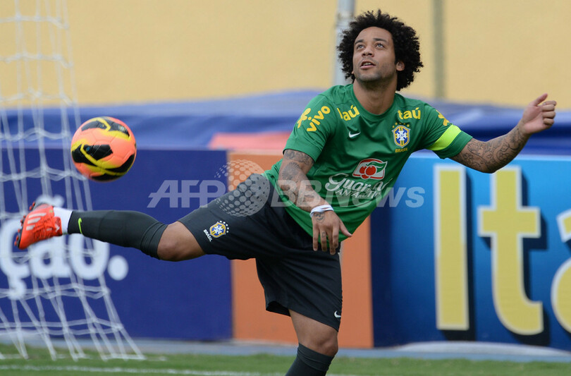 トレーニングに臨むマルセロ(Marcelo Vieira Da Silva Junior、2013年5月29日撮影)。(c)AFP/VANDERLEI ALMEIDA