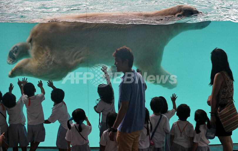 【5月30日 AFP】シンガポールのシンガポール動物園(Singapore Zoo)で29日、雄のホッキョクグマ「イヌカ(Inuka)」が「ツンドラの新居」に引っ越した。イヌカは22年前に熱帯地方で生まれた最初のホッキョクグマ。2700平方メートルにおよぶ新居は、温度がコントロールされた休憩場所と広々としたプールが特徴。(c)AFP