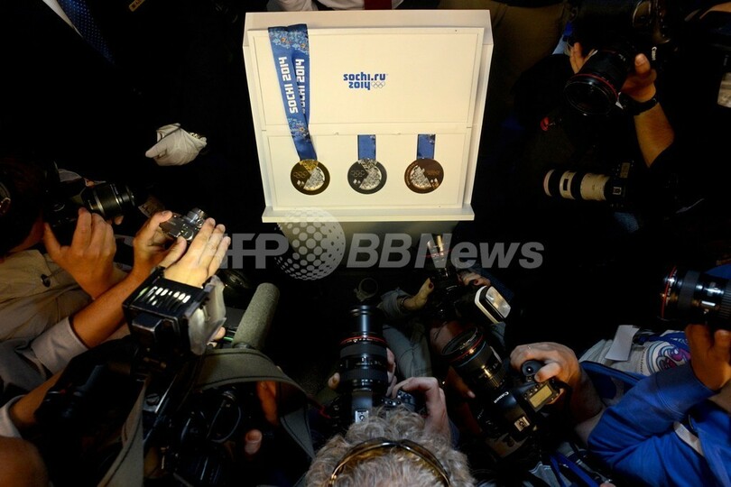 【5月31日 AFP】ロシア五輪委員会(Russian Olympic Committee、ROC)は30日、2014年ソチ冬季五輪で授与されるメダルをサンクトペテルブルク(St Petersburg)で開催された式典で初公開した。