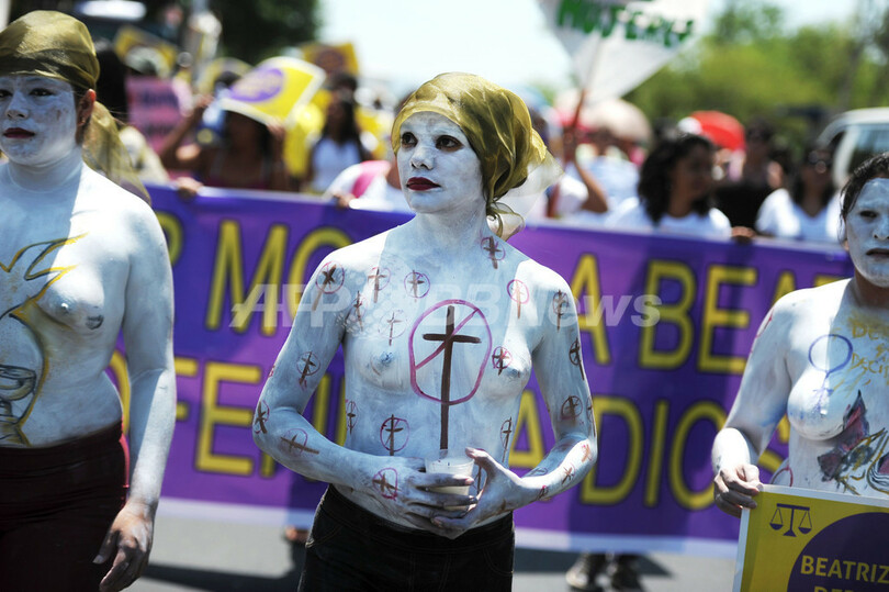今回の最高裁判断について女性権利団体は猛烈に批判している一方、カトリック系組織は称賛している。(c)AFP/Oscar BATRES