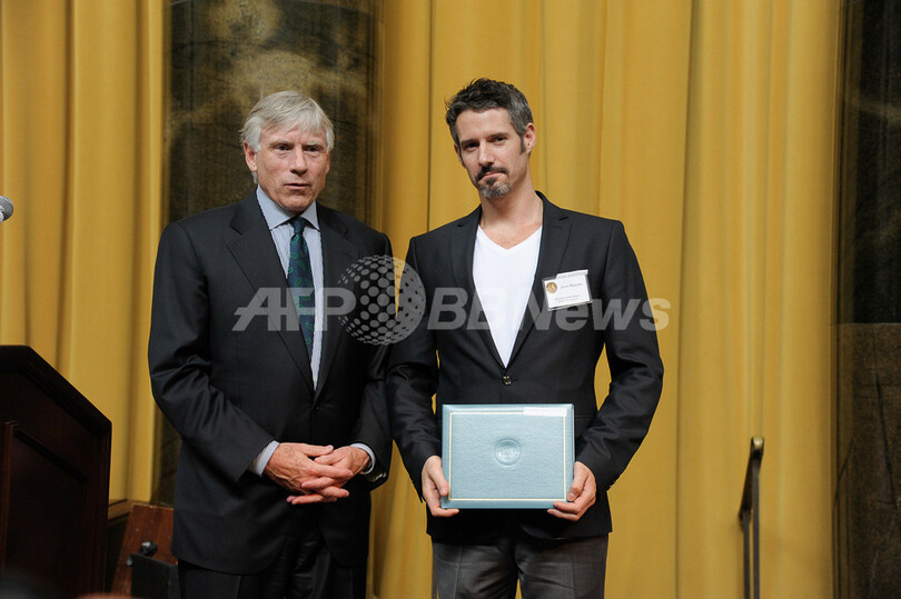 【5月31日 AFP】2013年ピュリツァー賞(Pulitzer Prize)の授賞式が30日、米ニューヨーク(New York)のコロンビア大学(Columbia University)で行われ、特集報道写真賞を受賞したフランス通信(Agence France-Presse、AFP)のフリーランスカメラマン、ハビエル・マンサーノ(Javier Manzano)氏(37)に同大学のリー・ボーリンジャー(Lee Bollinger)学長から賞状と副賞1万ドル(約100万円)が贈られた。