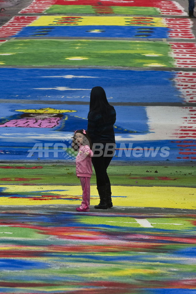 ニュース ライフ 色砂で地面にキリスト、町中の道がカラフルに変身 ブラジル 2013年5月31日 17:03 発信地:カサパーヴァ/ブラジル [ 中南米 ブラジル ] このニュースをシェア ‹ › ❮ 8/10 ❯ ブラジル・サンパウロ(Sao Paulo)から約120キロメートル離れたカサパバ(Cacapava)では30日、カトリックの祝祭「コルプス・クリスティ(Corpus Christi、聖体祭)」を祝い、色砂を使って路上にさまざまな巨大な絵が描かれた。写真は、色砂で道路に描かれた絵の上に立つ親子(2013年5月30日撮影)。(c)AFP/NELSON ALMEIDA 画像作成中 ! 【5月31日 AFP】ブラジル・サンパウロ(Sao Paulo)から約120キロメートル離れたカサパバ(Cacapava)では30日、カトリックの祝祭「コルプス・クリスティ(Corpus Christi、聖体祭)」を祝い、色砂を使って路上にさまざまな巨大な絵が描かれた。(c)AFP ライフ 一覧へ> メディア・報道関係・法人の方向け 写真・動画 購入のお問合せ>