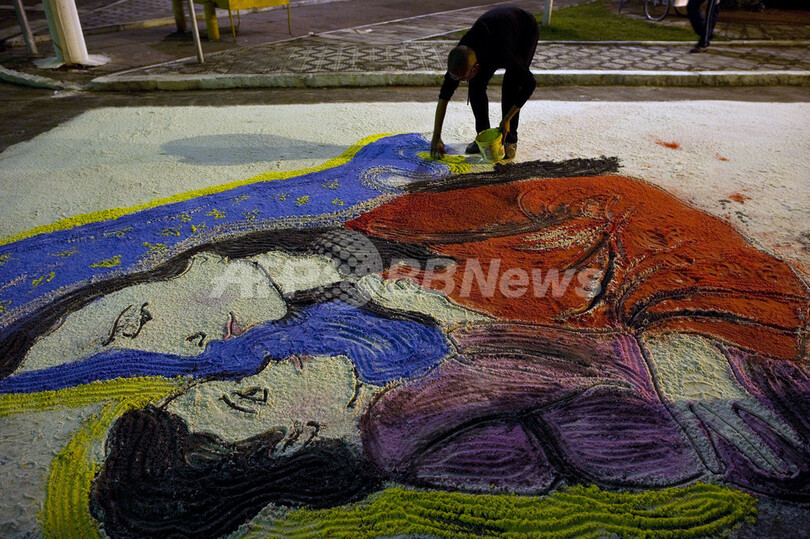 ニュース ライフ 色砂で地面にキリスト、町中の道がカラフルに変身 ブラジル 2013年5月31日 17:03 発信地:カサパーヴァ/ブラジル [ 中南米 ブラジル ] このニュースをシェア ‹ › ❮ 6/10 ❯ ブラジル・サンパウロ(Sao Paulo)から約120キロメートル離れたカサパバ(Cacapava)では30日、カトリックの祝祭「コルプス・クリスティ(Corpus Christi、聖体祭)」を祝い、色砂を使って路上にさまざまな巨大な絵が描かれた。写真は、色砂で道路に絵を描く男性(2013年5月30日撮影)。(c)AFP/NELSON ALMEIDA 画像作成中 ! 【5月31日 AFP】ブラジル・サンパウロ(Sao Paulo)から約120キロメートル離れたカサパバ(Cacapava)では30日、カトリックの祝祭「コルプス・クリスティ(Corpus Christi、聖体祭)」を祝い、色砂を使って路上にさまざまな巨大な絵が描かれた。(c)AFP ライフ 一覧へ> メディア・報道関係・法人の方向け 写真・動画 購入のお問合せ>