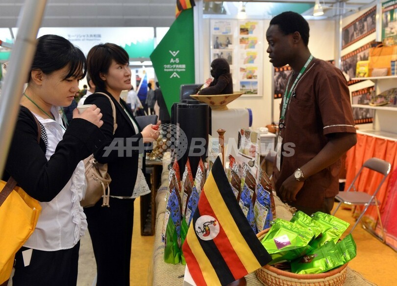 写真はアフリカン・フェアの会場でコーヒーを試飲する来場者(2013年5月30日撮影)。(c)AFP/Yoshikazu TSUNO