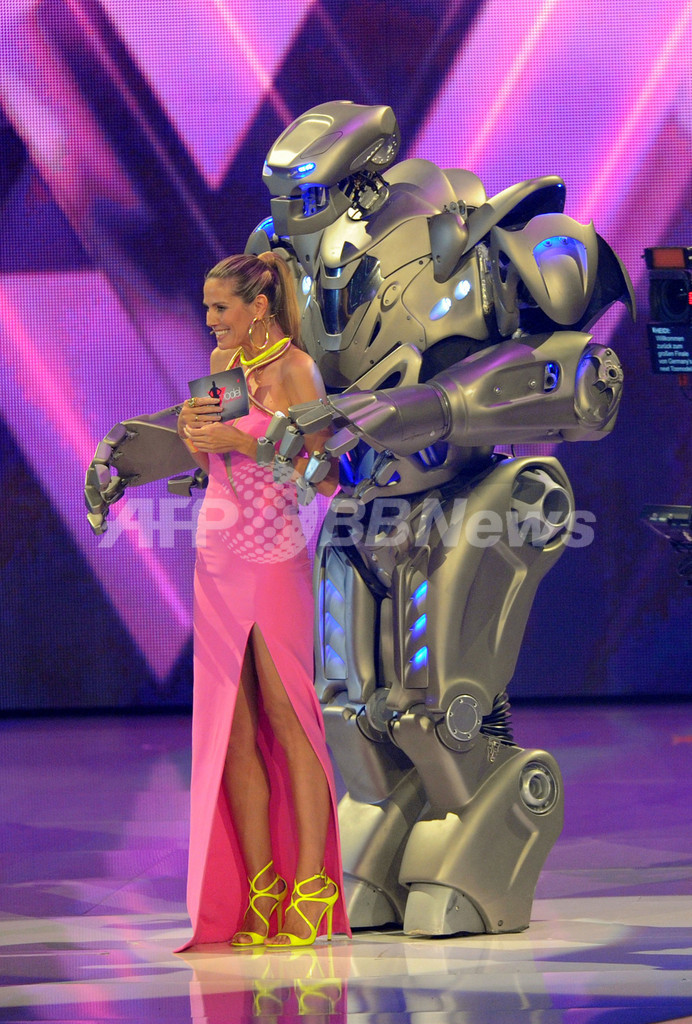 優勝者には、ドイツ・ハンブルク出身のLovelyn Enebechi(16)、準優勝者には、エムデン出身のMaike van Grieken(20)が選ばれた。会場のステージには巨大なロボットも登場し、ハイディとキスをしたりLovelynとランウェイを歩いて見せた。(c)AFP