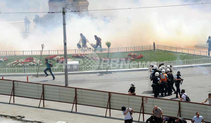 【6月1日 AFP】トルコのイスタンブール(Istanbul)にあるタクシム広場(Taksim Square)で31日、広場そばの公園の取り壊し計画に反対する抗議集会から発展した反政府デモを解散させるため、機動隊が催涙ガスや放水砲を使用、この衝突により、数十人が重軽傷を負った。