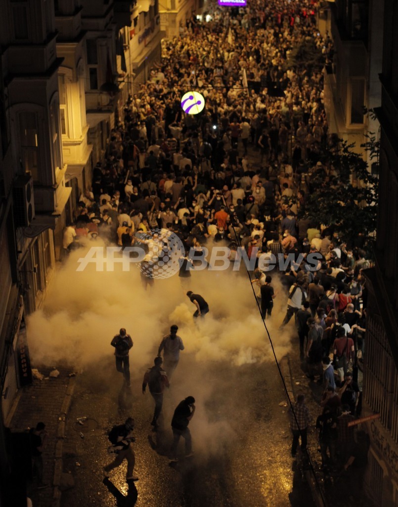 【6月1日 AFP】トルコのイスタンブール(Istanbul)にあるタクシム広場(Taksim Square)で31日、広場そばの公園の取り壊し計画に反対する抗議集会から発展した反政府デモを解散させるため、機動隊が催涙ガスや放水砲を使用、この衝突により、数十人が重軽傷を負った。