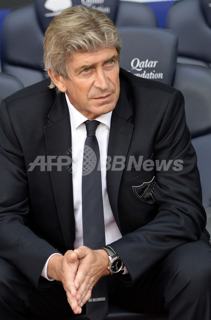 試合開始を待つマラガのマヌエル・ ペジェグリーニ(Manuel Pellegrini)監督(2013年6月1日撮影)。(c)AFP/LLUIS GENE