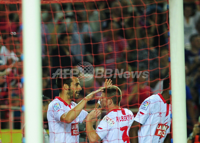 一方のセビージャはリーグ戦9位となったものの、6位となったマラガ(Malaga CF)が欧州サッカー連盟(Union of European Football Associations、UEFA)主催大会から1シーズンの参加除外の裁定を下されて現在スポーツ仲裁裁判所(Court of Arbitration for Sport、CAS)に不服申し立てを行っており、さらに8位のラージョ・バジェカーノ(Rayo Vallecano)がスペインサッカー連盟(Spanish Football Federation)からUEFAライセンスを発給されていないため、スペインの第3代表としてヨーロッパリーグに出場する可能性がある。(c)AFP