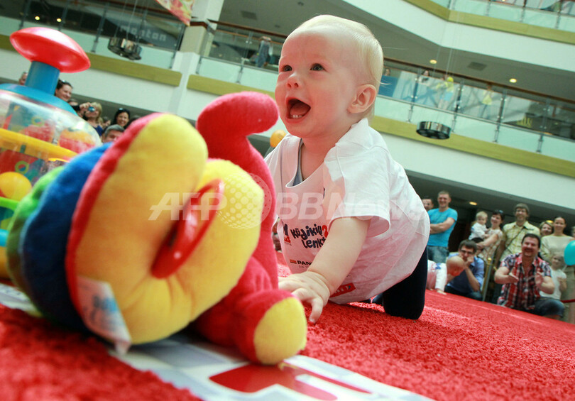 【6月2日 AFP】「国際子どもの日(International Children's Day)」の1日、リトアニアの首都ビリニュス(Vilnius)で、赤ちゃんの「はいはい競争」が開催され、お母さんやお父さんの呼び声が飛び交った。(c)AFP