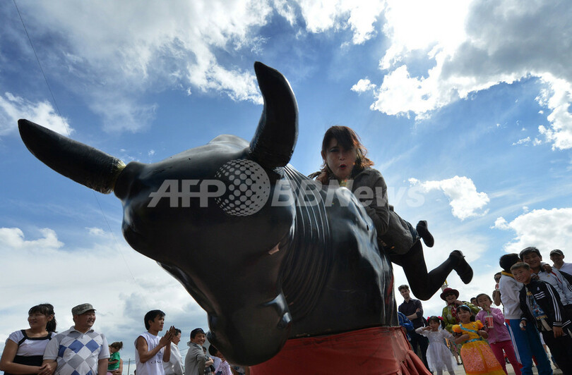 【6月5日 AFP】モンゴル・バヤンゴル(Bayangol)で1日、「国際子どもの日(International Children's Day)」を祝うカーニバルが開催され、乗った人を振り払う雄牛型の乗り物の展示やショーが行われた。冬が厳しく観光シーズンが短いモンゴルだが、近年、冒険好きの観光客の間で旅行先として人気が高まっている。(c)AFP