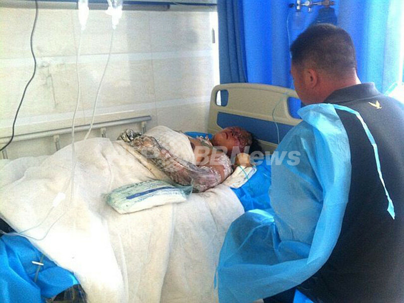 中国北東部・吉林(Jilin)省徳恵(Dehui)の病院で治療を受ける、家禽(かきん)処理工場の火災事故の負傷者(2013年6月3日撮影)。(c)AFP