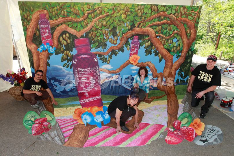 【6月4日 AFP】米コロラド州デンバー(Denver)のデンバー動物園(Denver Zoo)で1日、米飲料メーカーのSoBeと、3Dチョークアーティストのトレーシー・リー・スタム(Tracy Lee Stum)さんがコラボレートした3Dインスタレーション「SoBe 3D Worlds of Flavor(SoBe、味の三次元世界)」が公開された。このアートはトレーシーさんがSoBeの飲料のストロベリーキウイ味(SoBe Lifewater Strawberry Kiwi)から発想を得て制作した。(c)AFP