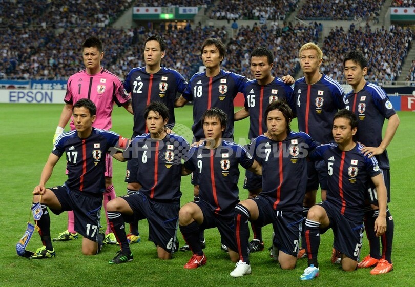 試合前の写真撮影に臨む日本の選手(2013年6月4日撮影)。(c)AFP/TOSHIFUMI KITAMURA
