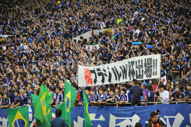 本大会出場に歓喜する日本代表のサポーター(2013年6月4日撮影)。(c)AFP/KAZUHIRO NOGI