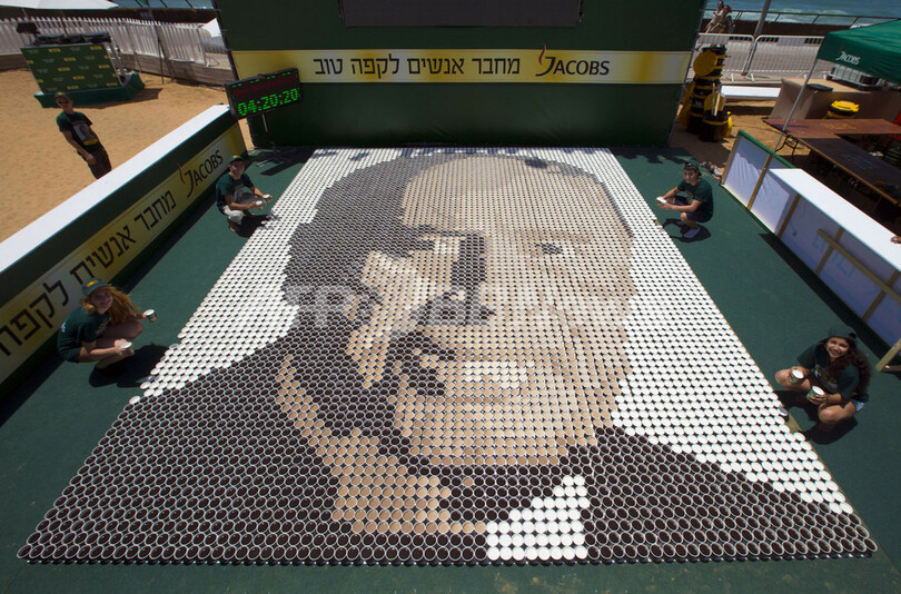 ニュース ライフ こぼれ話 コーヒーで大統領の巨大モザイク画、イスラエル 2013年6月6日 8:59 発信地:テルアビブ/イスラエル [ 中東・北アフリカ イスラエル ] このニュースをシェア ‹ › ❮ 4/5 ❯ イスラエルのテルアビブ(Tel Aviv)で作られた、色や濃さの違うコーヒーを入れた6160個のカップで描いた同国のシモン・ペレス(Shimon Peres)大統領の肖像画(2013年6月4日撮影)。(c)AFP/JACK GUEZ 画像作成中 ! 【6月6日 AFP】イスラエルのテルアビブ(Tel Aviv)で4日、コーヒーを使った世界最大のモザイク画を作るギネス世界記録(Guinness World Records)への挑戦が行われ、色や濃さの違うコーヒーを入れた6160個のカップを使い、同国のシモン・ペレス(Shimon Peres)大統領の肖像画が描かれた。このイベントはペレス大統領が今年、90歳を迎えるのを祝して行われた。(c)AFP ライフ 一覧へ> メディア・報道関係・法人の方向け 写真・動画 購入のお問合せ>