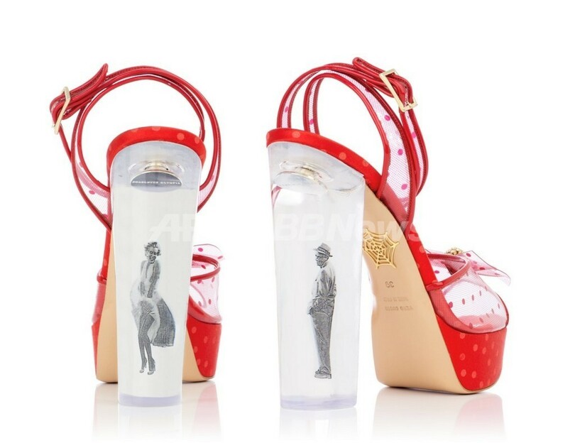 今回のストアでは、「ハリウッドランド」をテーマにした新作、13年プレ・フォールコレクションをいち早く展開。古き良きグラマーな時代を反映したグリット感溢れるラインアップを取り揃える。限定アイテムとして、クリアなヒール部分にハリウッドを代表するスター、マリリン・モンロー(Marilyn Monroe)とトム・イーウェル(Tom Ewell)のモノクロ写真をあしらったユニークなシューズを発売。そのほか、ロンドンの本店でのみ展開していたタイツやスカーフ、メンズのボウタイなど、ファンにはたまらないアイテムが並ぶ。