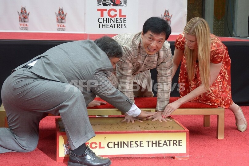 【6月7日 AFP】米ハリウッド(Hollywood)のチャイニーズ・シアター(Chinese Theatre)で6日、香港(Hong Kong)の映画スター、ジャッキー・チェン(Jackie Chan、59)の手形を取るセレモニーが行われた。同劇場に中国人男性俳優が手形を残すのは初めて。