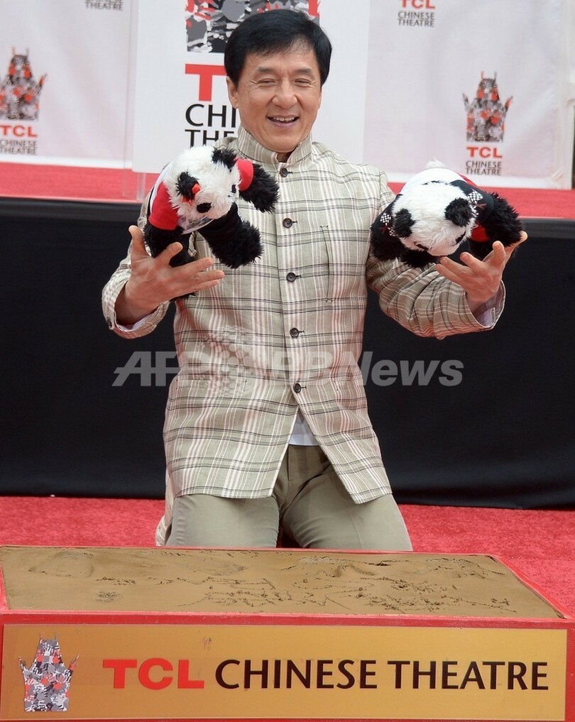 【6月7日 AFP】米ハリウッド(Hollywood)のチャイニーズ・シアター(Chinese Theatre)で6日、香港(Hong Kong)の映画スター、ジャッキー・チェン(Jackie Chan、59)の手形を取るセレモニーが行われた。同劇場に中国人男性俳優が手形を残すのは初めて。