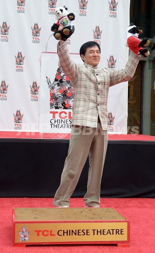 【6月7日 AFP】米ハリウッド(Hollywood)のチャイニーズ・シアター(Chinese Theatre)で6日、香港(Hong Kong)の映画スター、ジャッキー・チェン(Jackie Chan、59)の手形を取るセレモニーが行われた。同劇場に中国人男性俳優が手形を残すのは初めて。