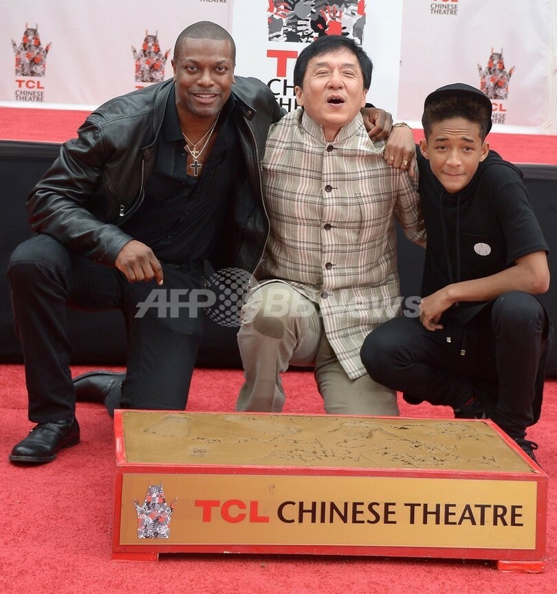 【6月7日 AFP】米ハリウッド(Hollywood)のチャイニーズ・シアター(Chinese Theatre)で6日、香港(Hong Kong)の映画スター、ジャッキー・チェン(Jackie Chan、59)の手形を取るセレモニーが行われた。同劇場に中国人男性俳優が手形を残すのは初めて。